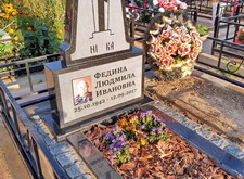 Когда памятник был изготовлен, идём на место захоронения. На данный момент на могиле находится лишь холмик, на котором растут цветы.